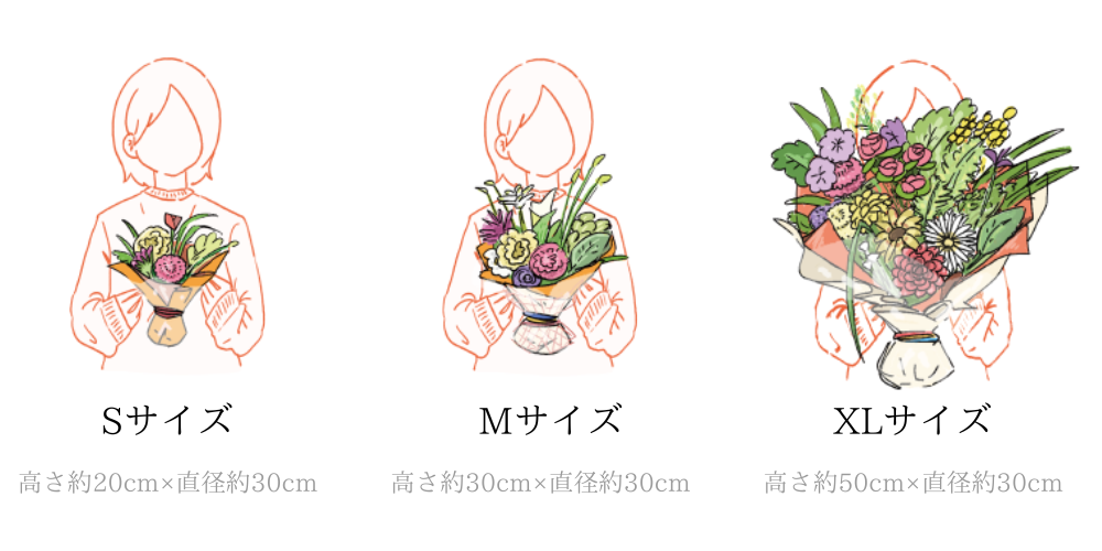 ・掲載写真は花材や色味、サイズはサンプルです。時期により花材は変動致しますのでボリューム感も異なります。