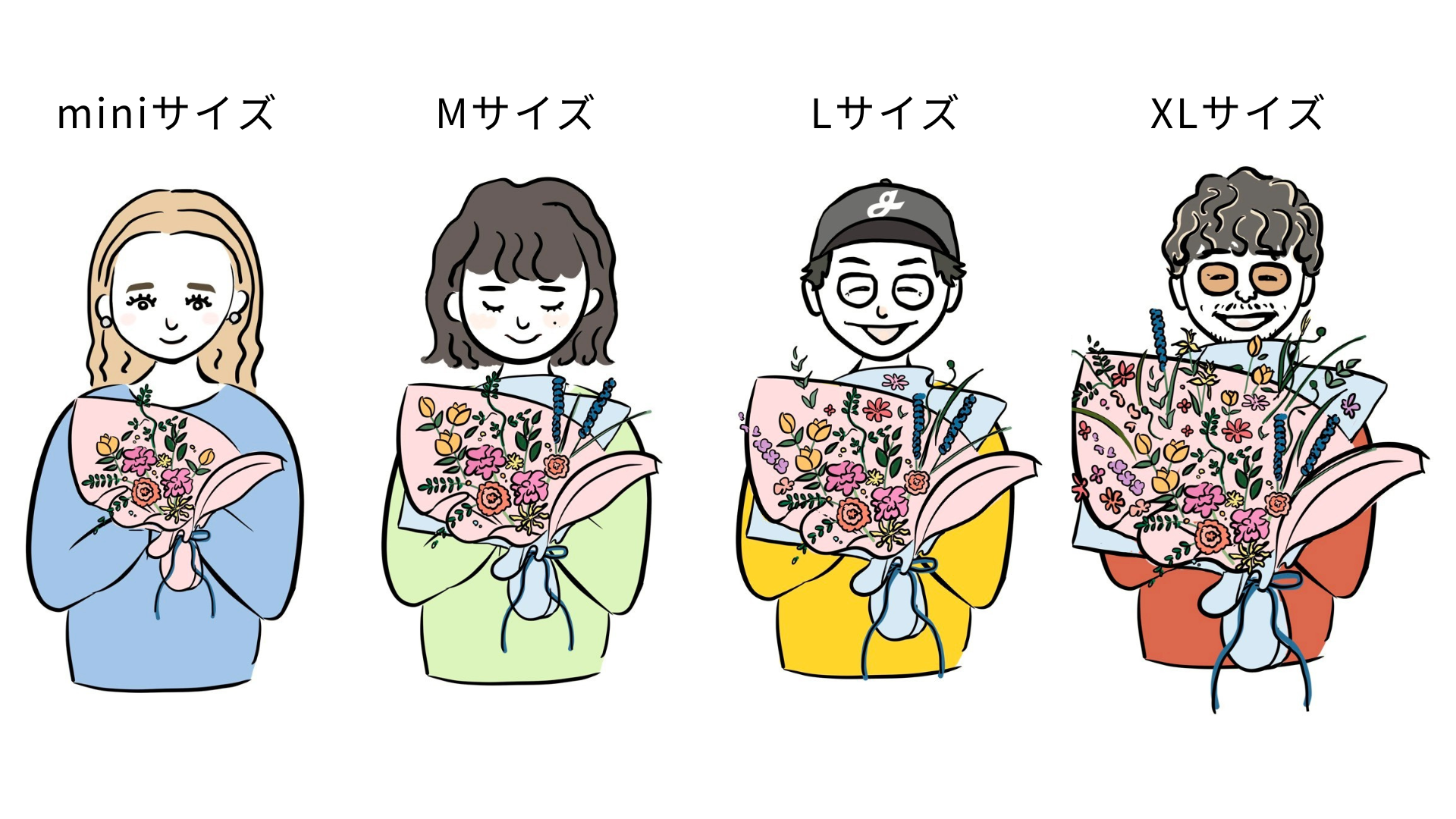 NEW【母の日】ブーケMother's Day Gift¥8,000 (税込価格 ¥8,800 )「選べるイメージ 花束」あなたのお母さんは、どんな人ですか?「やさしい人」「おもしろい人」「強くて、かっこいい人」「いつも味方でいてくれる人」きっと、ひとことで言い表せない。だからTAIYOFLOWERでは、“お母さんを想う気持ち“から選べる4つの花束をご用意しました。1|キュート白やピンクを基調にした、やわらかく、やさしい印象の花束。2|カラフル色とりどりの花を束ねた、華やかで、エネルギーのある花束3|ナチュラルグリーンや自然な色合いで仕立てる、落ち着きのある花束。4|フローリストにお任せこの季節の一番いい花で、フローリストが仕立てる花束。ミニブーケはTAIYOFLOWERオリジナル包装紙(オレンジ)を使用します。お花束のイメージは商品規格よりご選択いただけます。【サイズについて】花は、贈りものだけど本当は“気持ちを伝えるきっかけ“。どんな花を選ぶかで、伝わる想いは、少しだけ変わる。お花束のイメージは商品規格よりご選択いただけます。【ご確認ください】・予約期間:4/11〜4/30(限定数量に達し次第終了)※こちらは予約商品です。・お届け期間:5/8(金)〜5/10(日)※発送日の指定はできかねます。・掲載画像はイメージです。花は生き物だからこそ、その日いちばん美しい姿でお届けします。季節や出会いによって花材は変わりますが、イメージに込めた想いを大切に、フローリストが一つひとつお作りいたします。・メッセージカードご希望の方は、カート画面【ギフトサービスを注文する】よりメッセージカードをご選択してください。